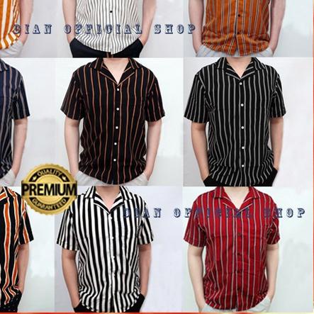 Baju kemeja pria kasual kemeja pria garis kebawah belang hitam m gtx33.